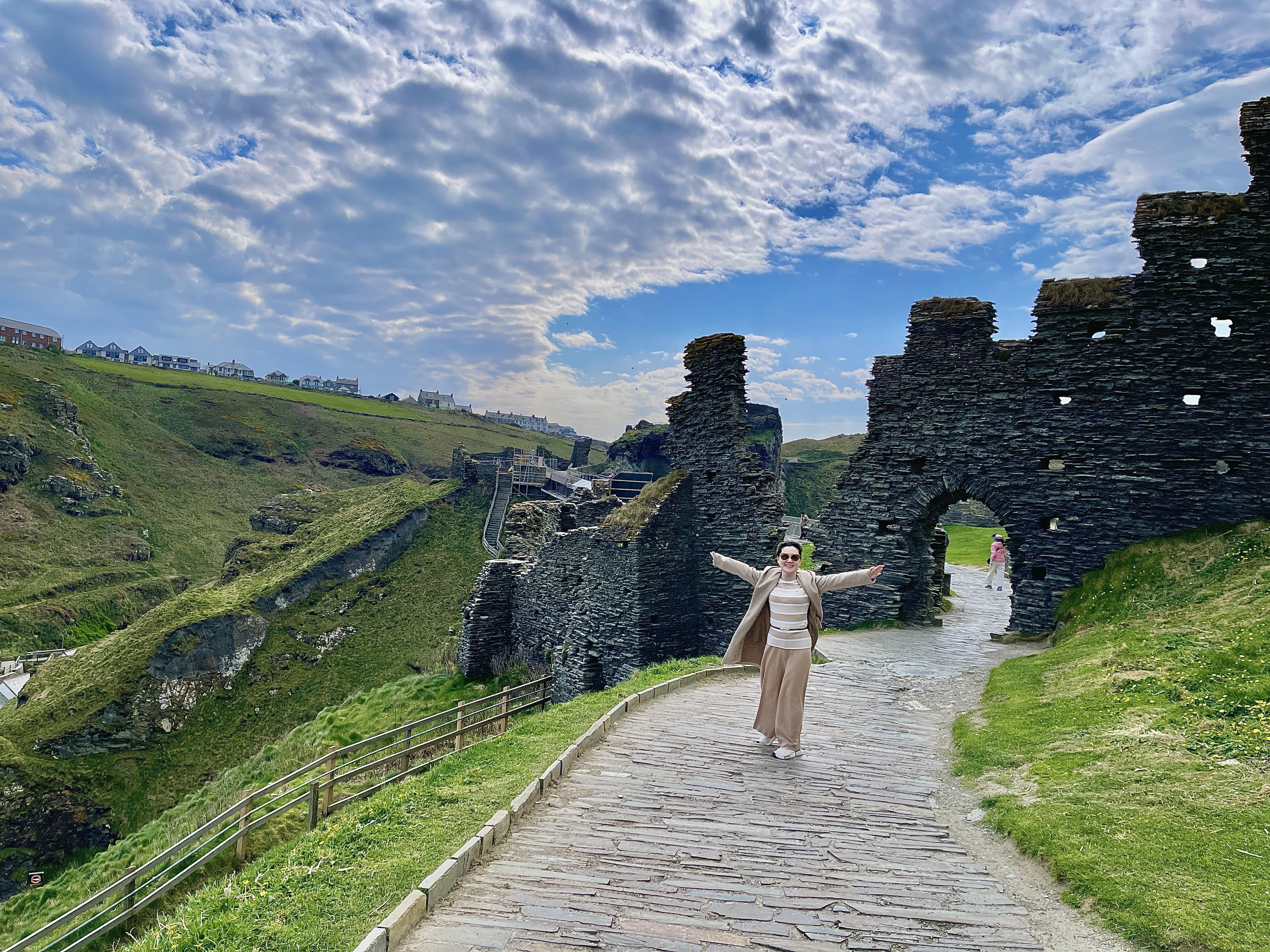 We kicked off our Cornwall adventure with a hearty Full English Breakfast at the inn, fueling up for a day of legendary discovery. Just a short walk away awaited Tintagel Castle, one of the most iconic historic sites in the UK and a must-visit for anyone chasing the magic of England’s countryside. Tintagel Castle is perched dramatically on Cornwall’s rugged cliffs. It is steeped in Arthurian legend and mystery. The site is said to be the birthplace of King Arthur himself.